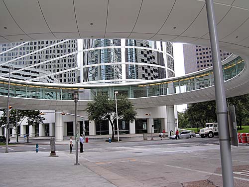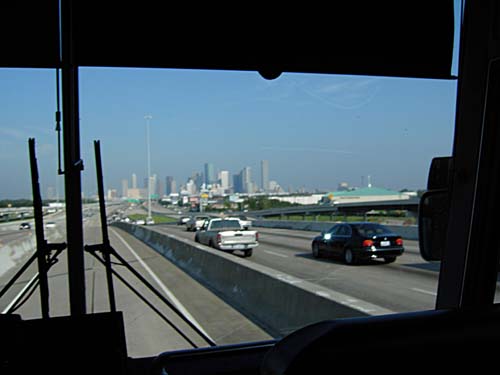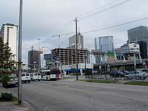 Houston skyline with Metro bus